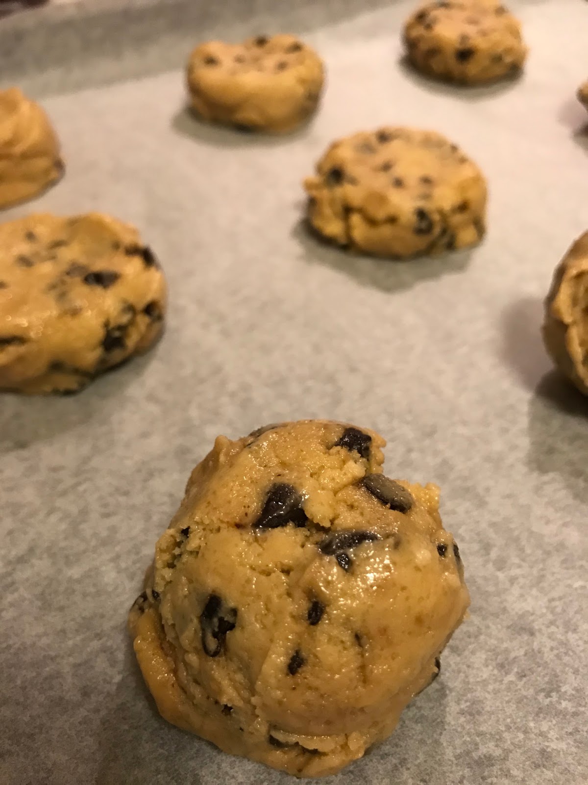 Dondurma kaşığı ile küre şeklinde parçalar alın ve yayılma aralıklarını da hesaplayıp yağlı kağıt üzerine dizin. ( bu iki görsel Margaux a ait )