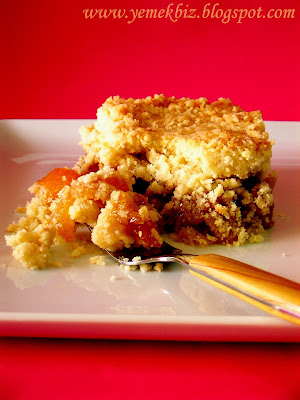 • Kayısılı harcı içine yayalım, kalan hamuru da harcın üzerine yayalım elimizle düzeltelim.