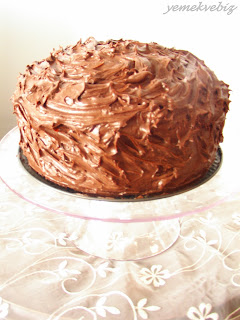 Ama iç ve dış krema konusunda emin değildim.Dusundugum bazı tarifler vardı, fakat ilk deneme olacagı için iyice emin olmalıydım. Sordum , soruşturdum:) sağolsun arkadaşlarım bana cevap verdiler. Ve Hülya benim tereddütte kaldığım krema konusunda beni aydınlattı olur dedi, yap dedi. Yaptım:) İyiki de yapmışım muhteşem bir tat sevgili Zinnur un tarifi. Ben bayıldım, oğlum bayıldı. Pastanın dış kaplaması için oldugu kadar iç krema olarak ta çok kullanışlı hatta ben 2 ölçü yaptım ki kalsın puding olarak tuketelim diye ki bugun nihayet bitti:) Tadında en ufak bir bozulma olmadı, hava almayan kaplarımda muhafaza ettim.